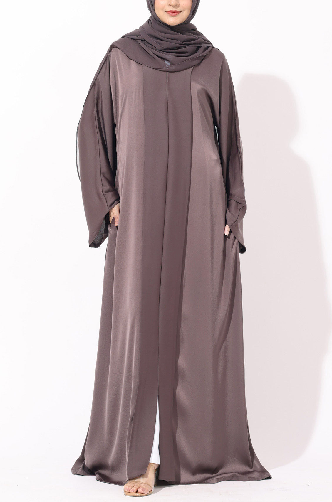 Step into royalty with our Luxury Pleated Abaya in Espresso Brown—where effortless elegance meets everyday comfort. Crafted from sumptuous Italian crepe fabric with a buttery soft touch and a subtle sheen, this timeless piece drapes like a dream. The graceful front pleats add dimension and movement, comes with two deep pockets. Feel like a queen in this sophisticated abaya that transforms any moment into a moment of pure grace.