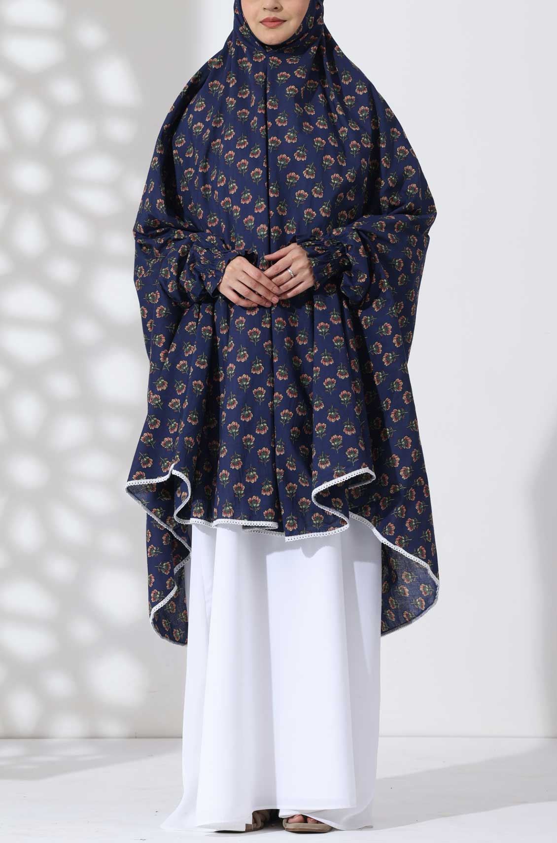 Navy Bloom Knee Length Cotton Namaz Makhna – OnlyModest